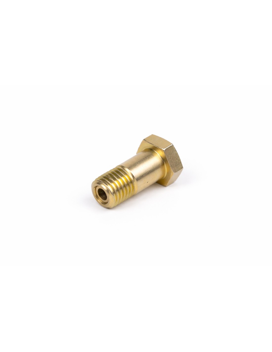 Este tipo de tornillo es habitual en conexiones hidráulicas del sistema de inyección, permitiendo el paso de combustible a través de su estructura mientras asegura una fijación firme y estanca.