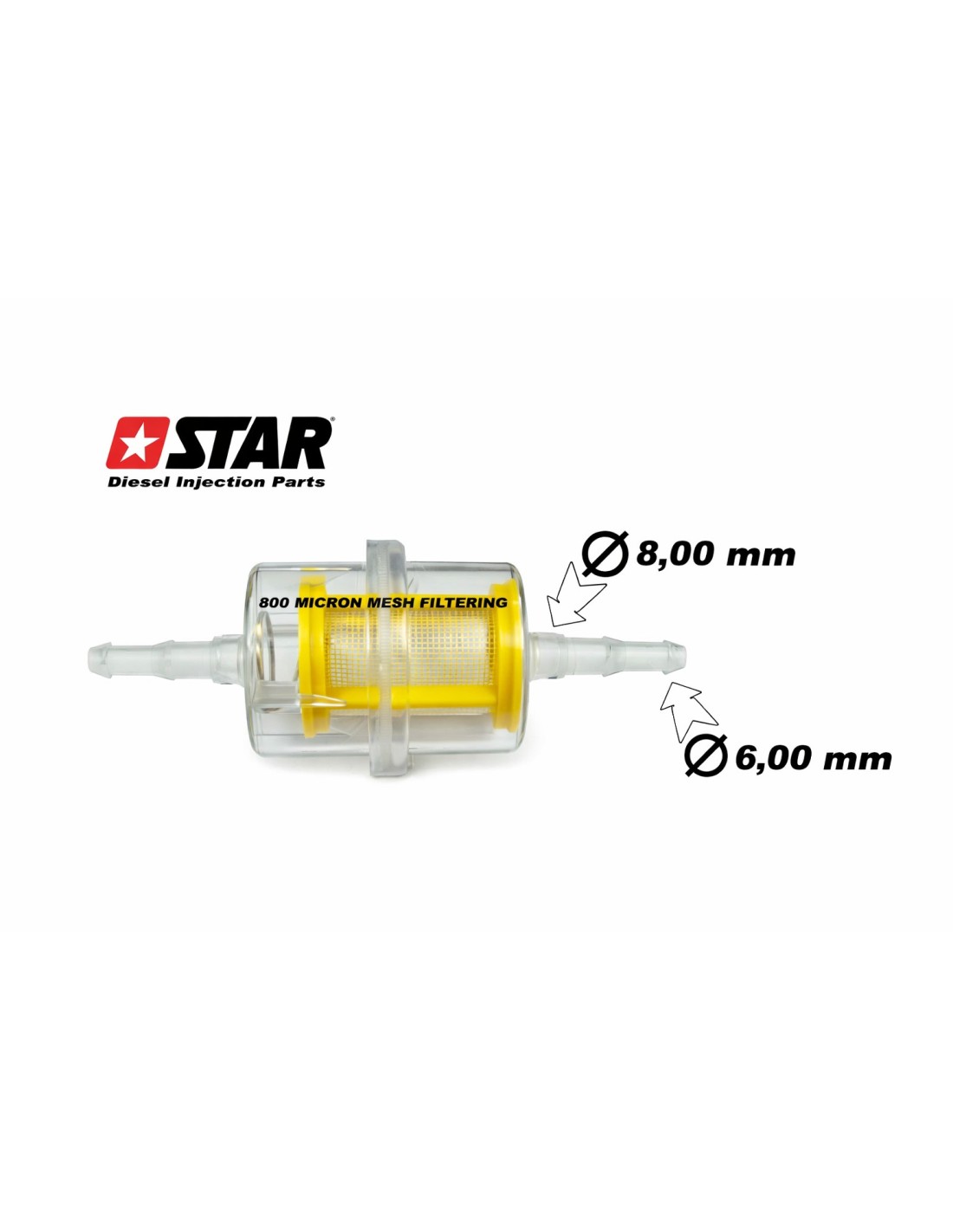 Indicado como prefiltro universal en sistemas de combustible, especialmente útil en tareas de mantenimiento preventivo y diagnóstico del circuito de alimentación.